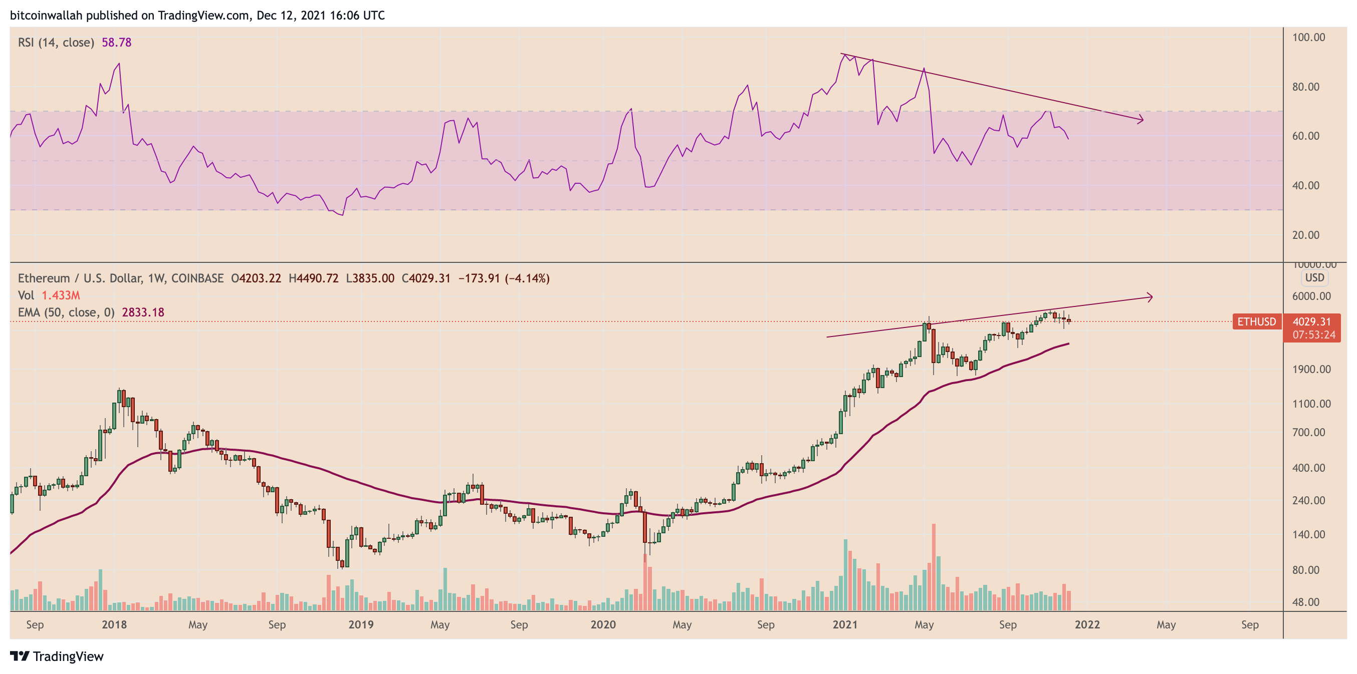 ETH worth rising wedge