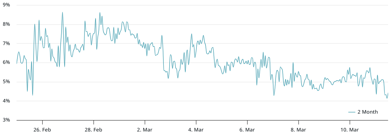 Bitcoin 2-month futures annualized premium. Source: laevitas.ch