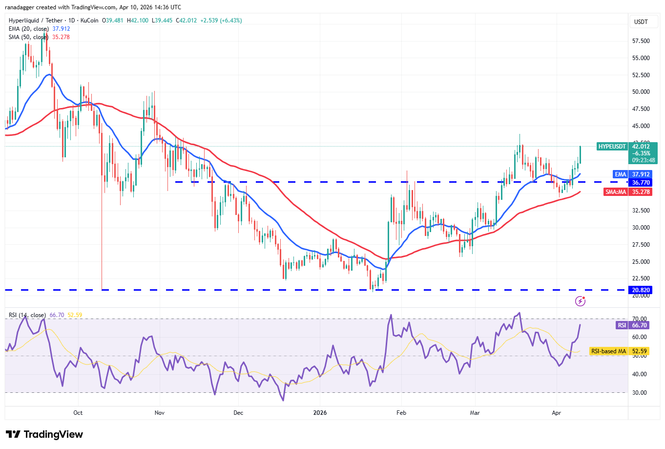 Sellers will have to swiftly yank the HYPE price below the 50-day SMA ($35.27) to signal a comeback. If they do that, the HYPE/USDT pair may plummet to the $29.42 level.