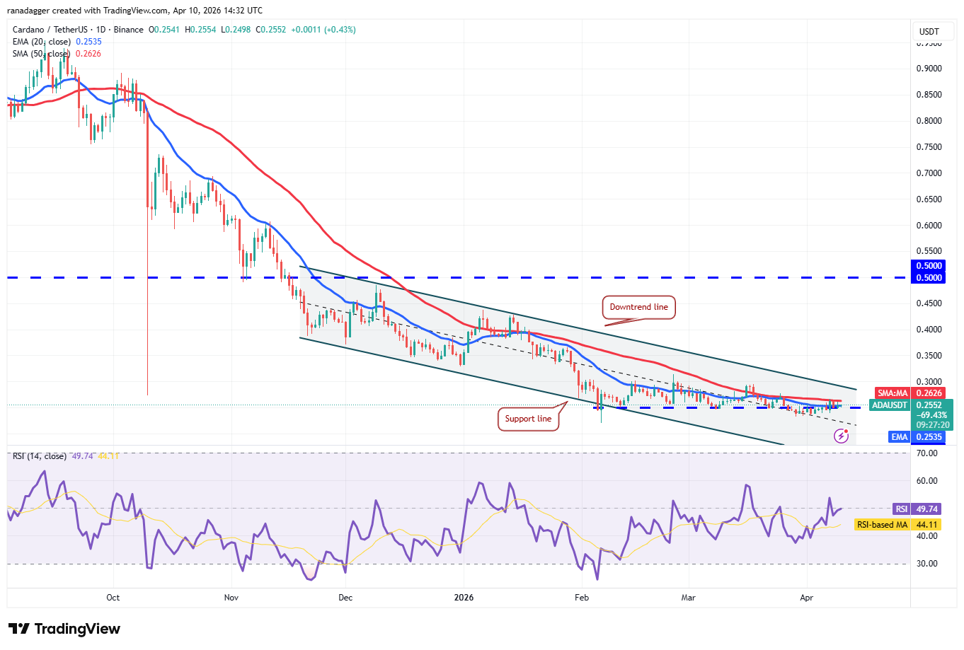 Sellers are defending the 50-day SMA ($0.26) in Cardano (ADA), but the bulls have not allowed the price to dip back below the $0.25 support.