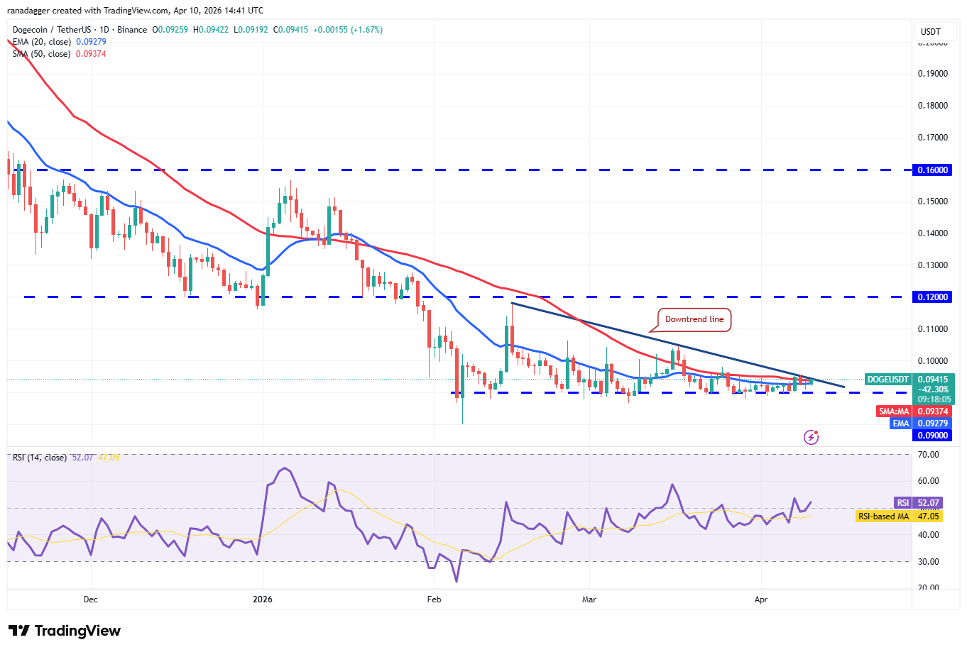 Sellers will have to quickly pull the DOGE price below the $0.09 support to complete the bearish descending triangle pattern. If they do that, the DOGE/USDT pair may plunge to $0.08 and later to the pattern target of $0.06.