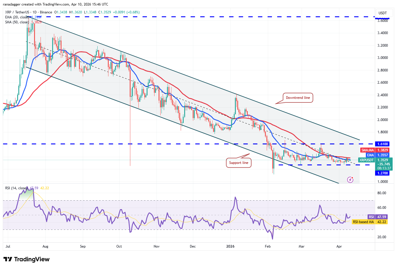 Buyers have failed to push XRP (XRP) above the 50-day simple moving average ($1.38), indicating that the bears are aggressively defending the level.