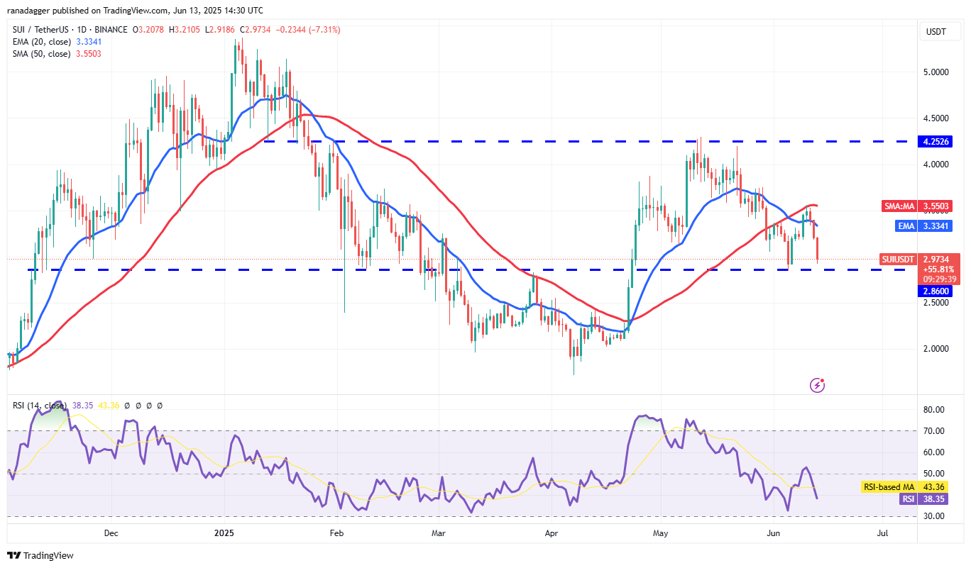 Sui (SUI) turned down from the 50-day SMA ($3.55) on Wednesday, indicating that bears are fiercely defending the level.