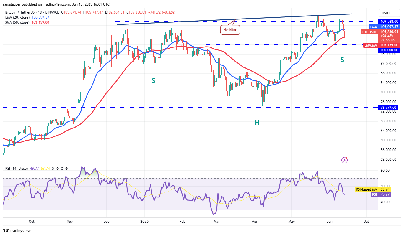Bitcoin fell to the 50-day simple moving average ($103,159) on Friday where the bulls are trying to arrest the decline.