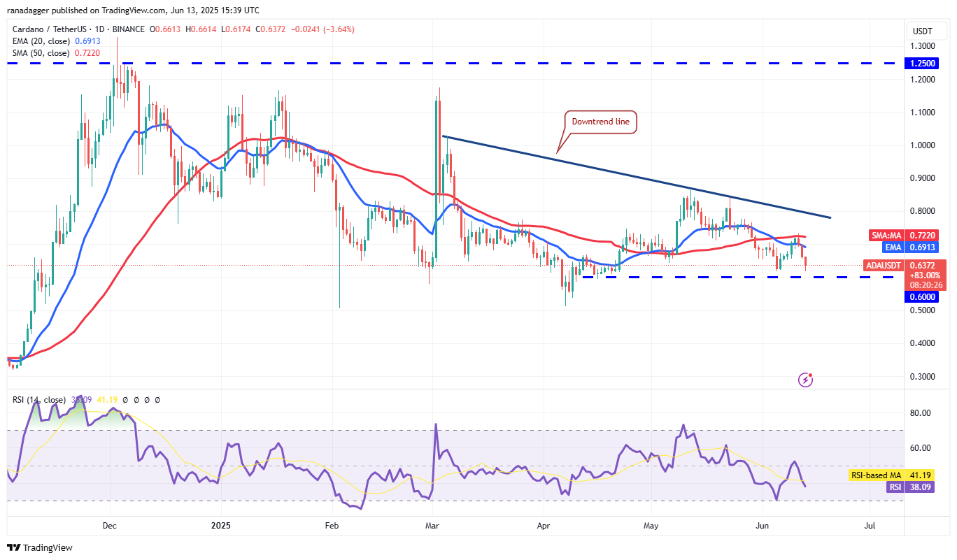 Cardano (ADA) turned down from the 50-day SMA ($0.72) on Wednesday, indicating that the bears continue to sell on rallies.