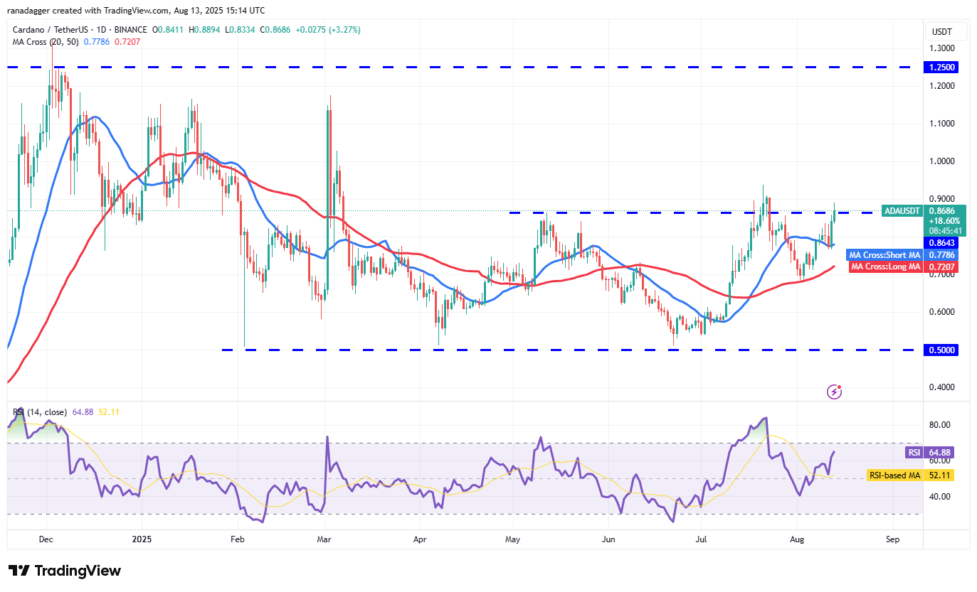 The bulls are trying to sustain the price above the $0.86 resistance. If they succeed, the ADA/USDT pair could climb to $0.94 and later to $1.02.