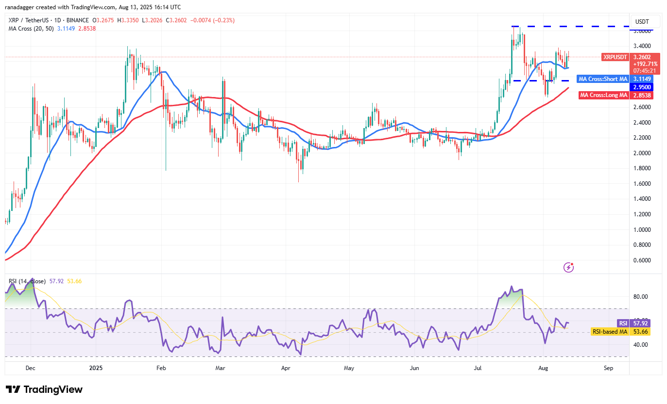 XRP (XRP) bounced off the 20-day SMA ($3.11) on Tuesday, but the bulls are struggling to sustain the higher levels.