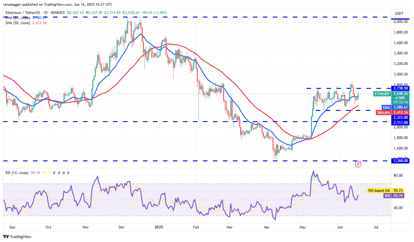 Ether closed below the 20-day EMA ($2,580) on Saturday, but the bears could not extend the pullback to the 50-day SMA ($2,412).
