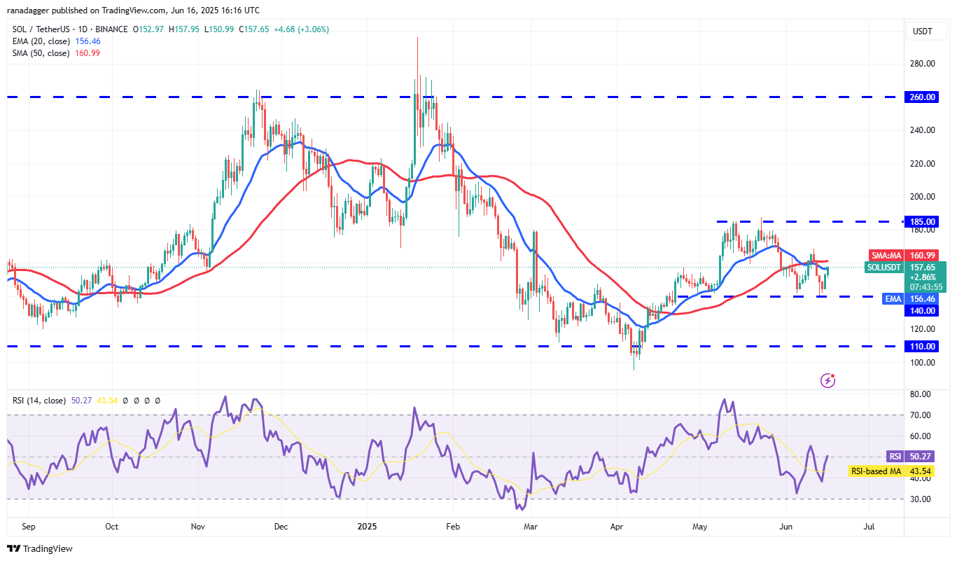 Solana (SOL) bounced off the $140 support on Saturday and reached the moving averages on Monday, indicating solid buying at lower levels.