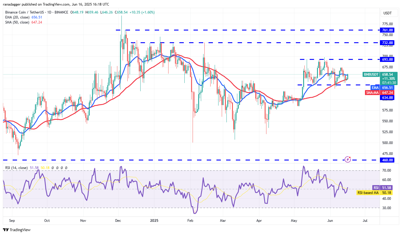 Buyers are trying to push BNB (BNB) above the 20-day EMA ($656), which could extend the stay inside the $634 to $693 range for some more time.