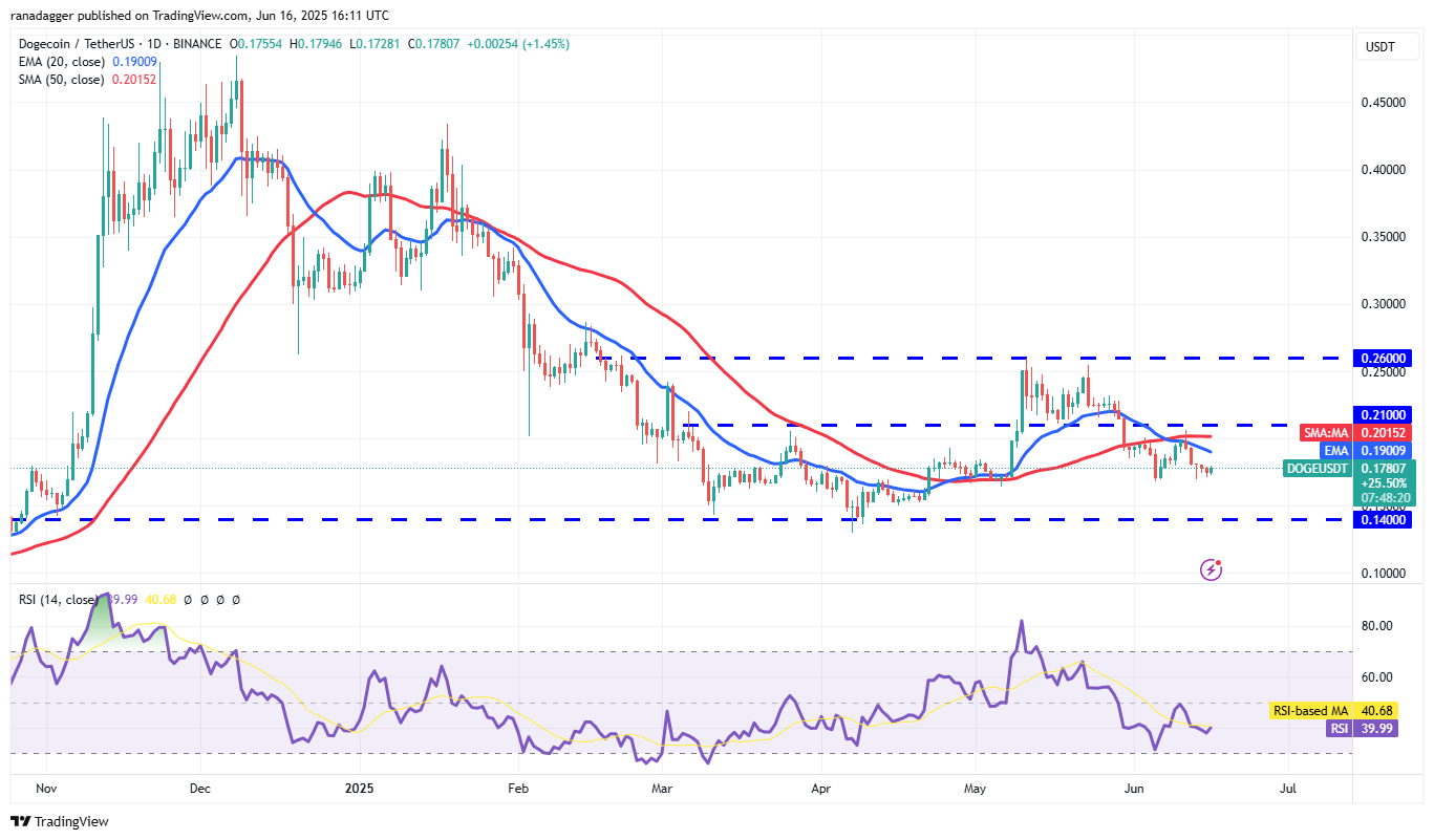 The downsloping 20-day EMA ($0.19) and the RSI in the negative territory increase the risk of a break below $0.16. If that happens, the DOGE/USDT pair could descend to the $0.14 support. The bulls will try to vigorously defend the $0.14 level because a break below it opens the doors for a fall to $0.10.