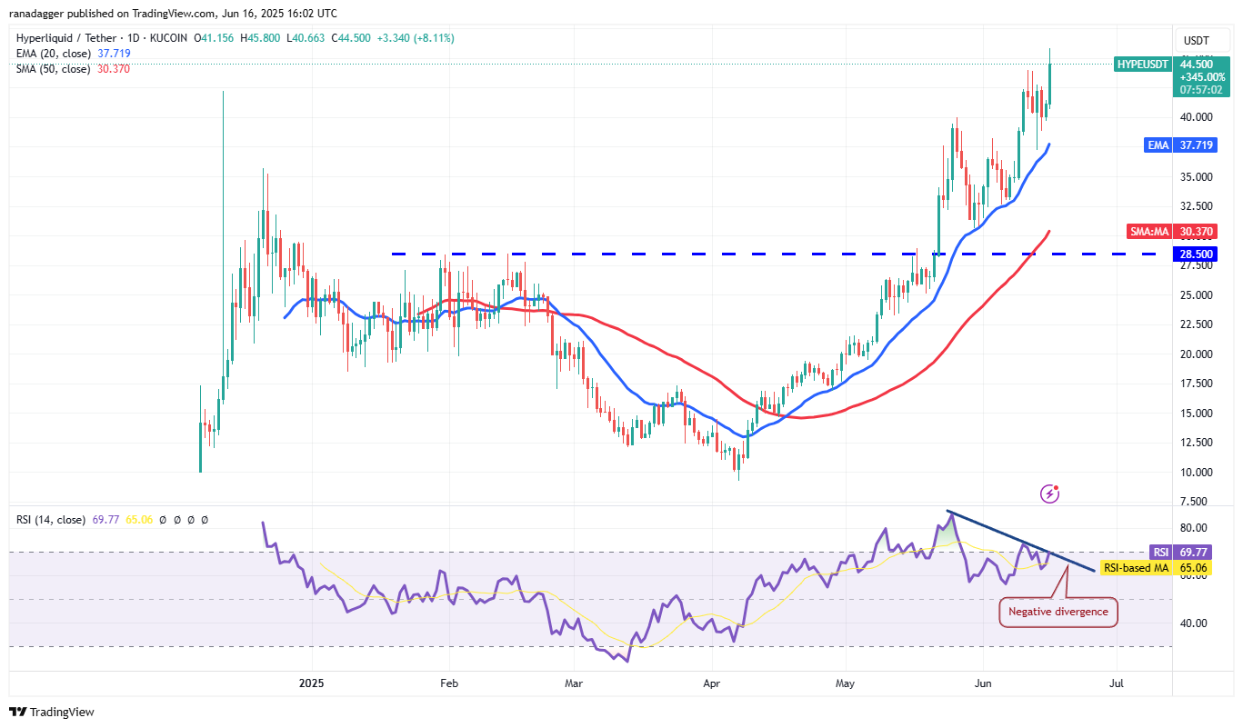 If the bulls maintain the price above $44, the HYPE/USDT pair could soar toward the next target objective of $50. Such a move invalidates the developing negative divergence on the RSI, signaling that the bulls have reasserted their supremacy.