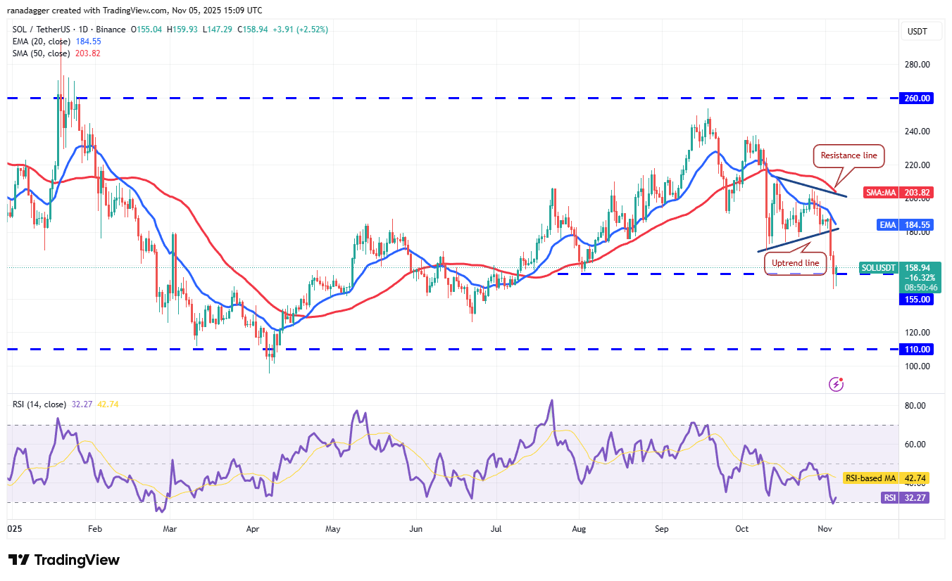 Buyers will need to push the Solana price above the 20-day EMA ($184) to indicate that selling pressure is easing. The SOL/USDT pair may then rally to the 50-day SMA ($203).