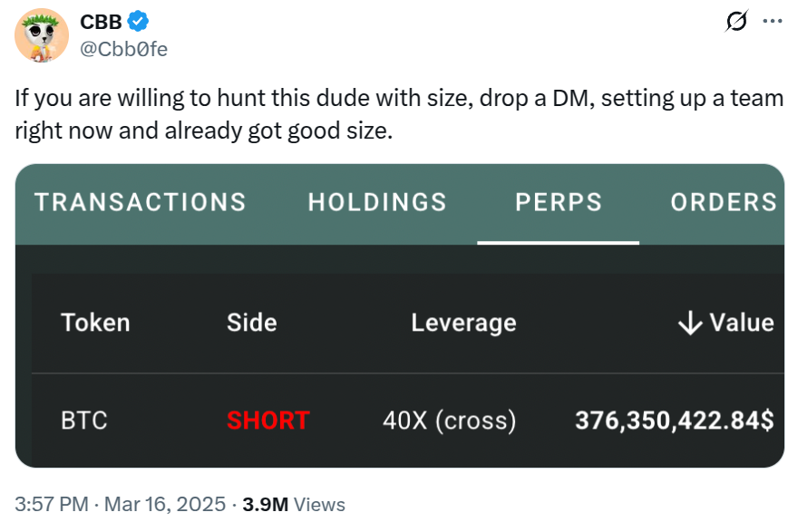His comments followed the liquidation of nearly $100 million in Bitcoin long positions on Hyperliquid reportedly held by a trader known as James Wynn. The event, which occurred after Bitcoin fell below $105,000, sparked claims on X that some users had coordinated to “hunt” Wynn’s liquidation.
