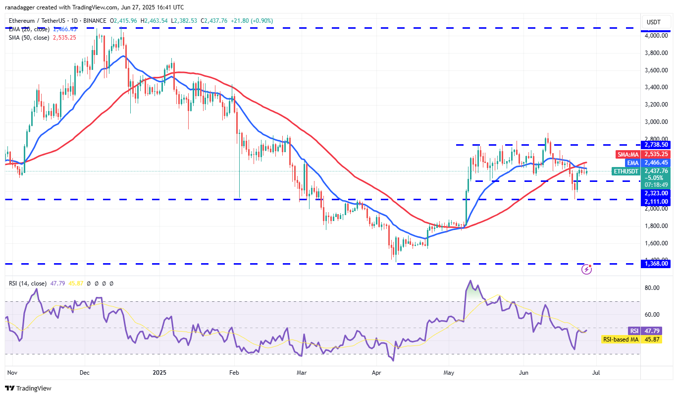 Ether has been clinging to the 20-day EMA ($2,466) since Tuesday, signaling that the bulls have maintained their pressure.