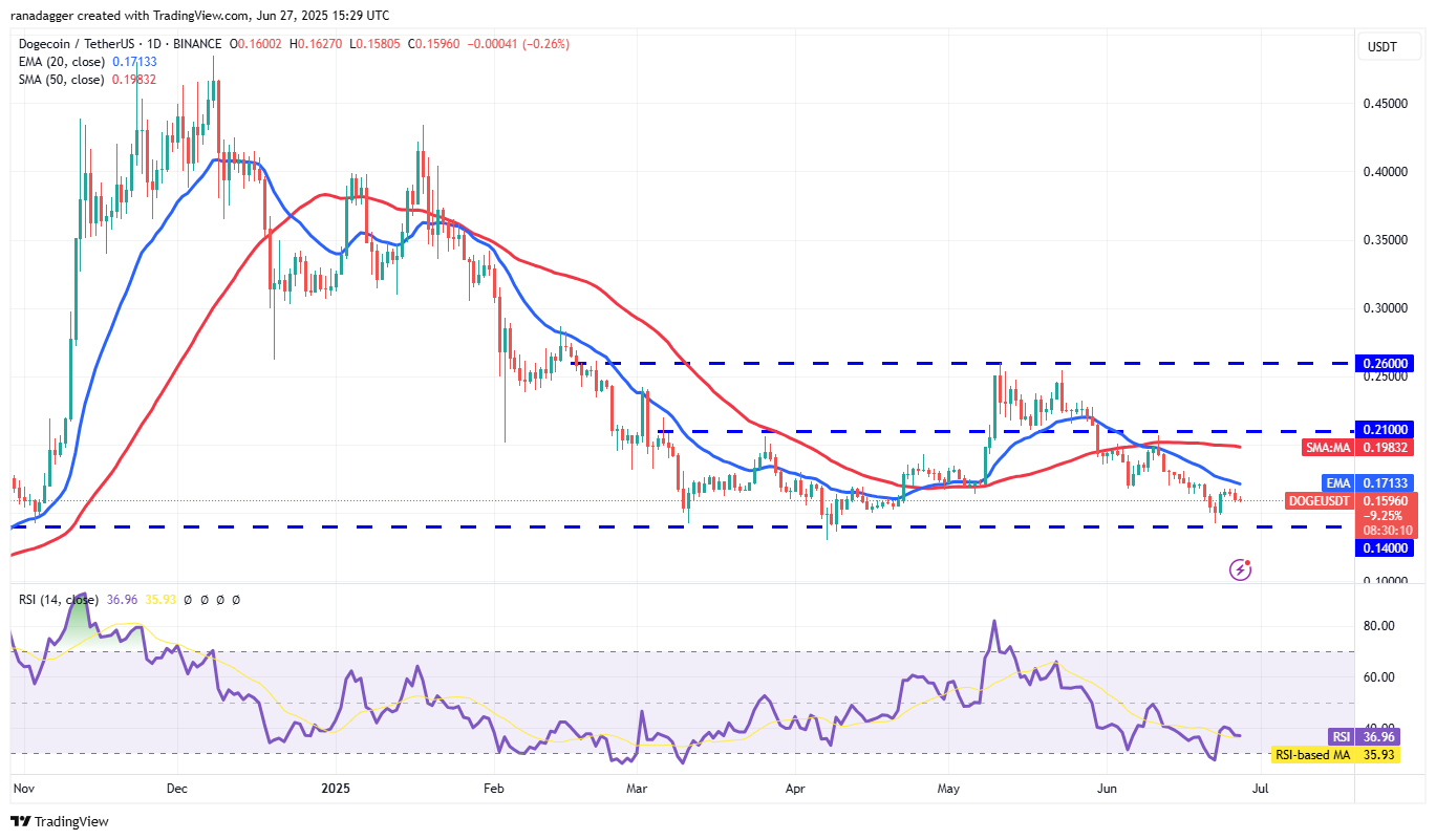 Dogecoin (DOGE) is facing selling at the 20-day EMA ($0.17), but the bulls have not ceded much ground to the bears. That increases the likelihood of a break above the 20-day EMA.