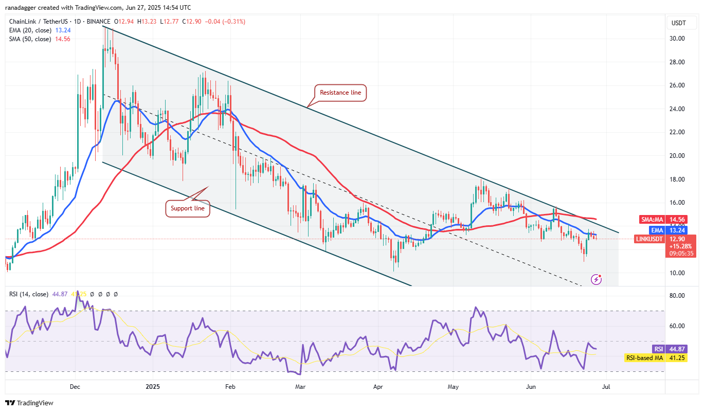 Chainlink (LINK) has been facing resistance at the 20-day EMA ($13.24) since Tuesday, but a positive sign is that the bulls have not ceded much ground to the bears.
