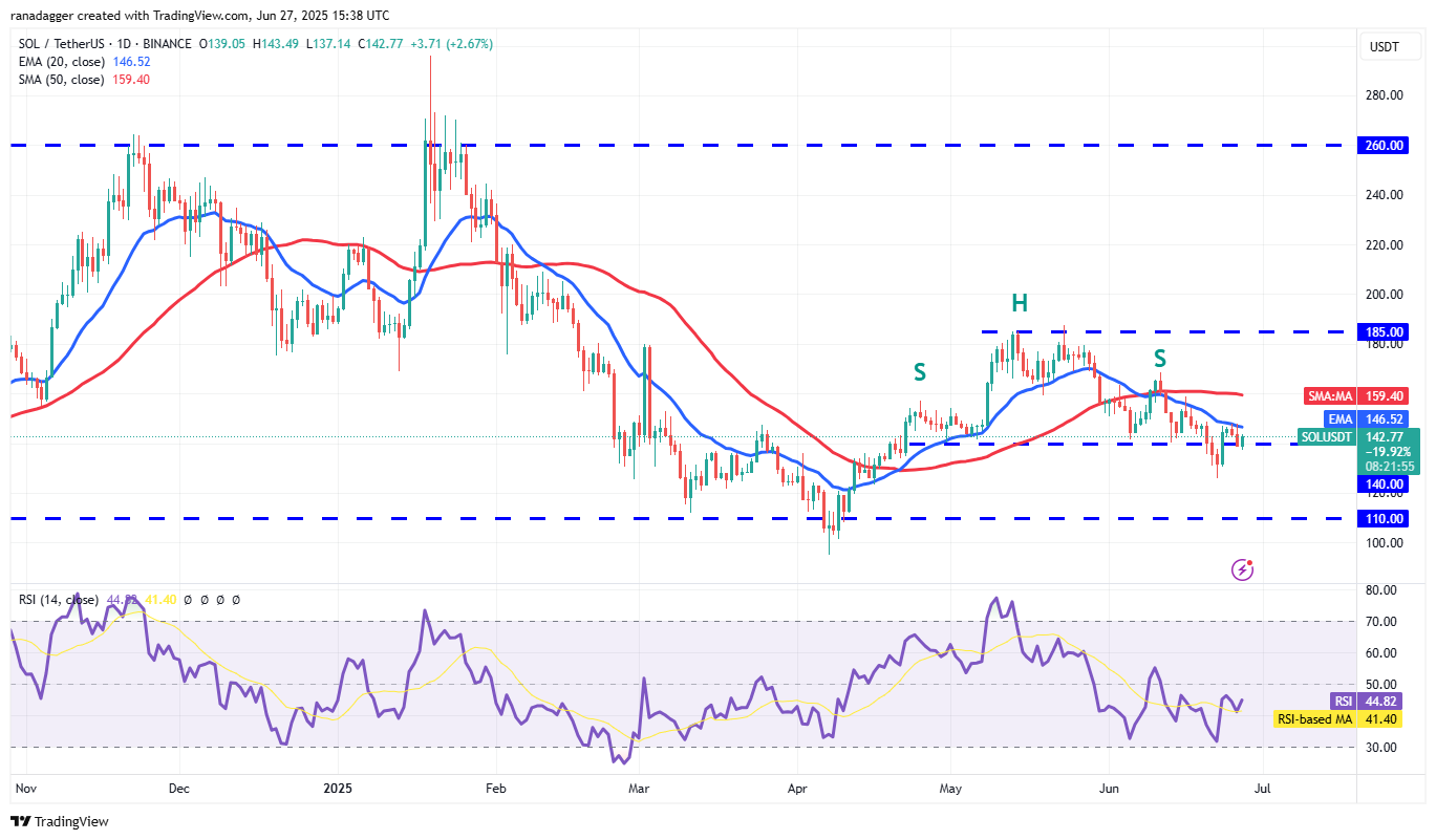 Solana (SOL) turned down from the 20-day EMA ($146) on Thursday, but the bulls are trying to defend the $140 level.