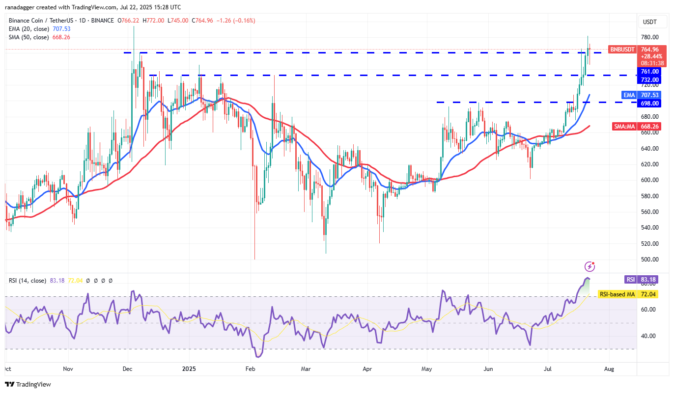 BNB (BNB) is witnessing a tough battle between the buyers and the sellers near the $761 level.