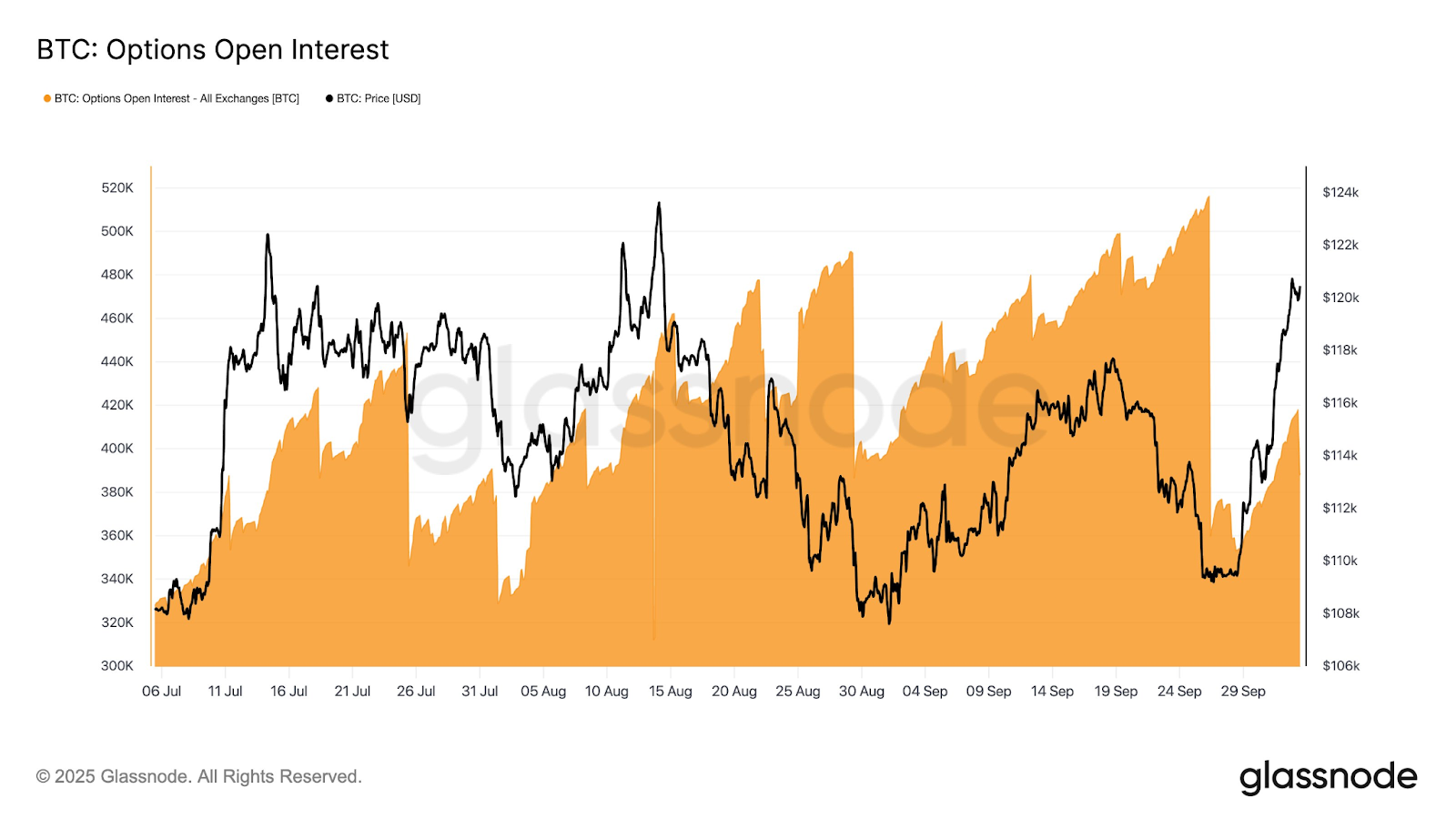 Meanwhile, Bitcoin’s open interest “reset sharply” after last week’s options expiry, which may “set the stage” for the fourth quarter, according to blockchain data platform Glassnode.