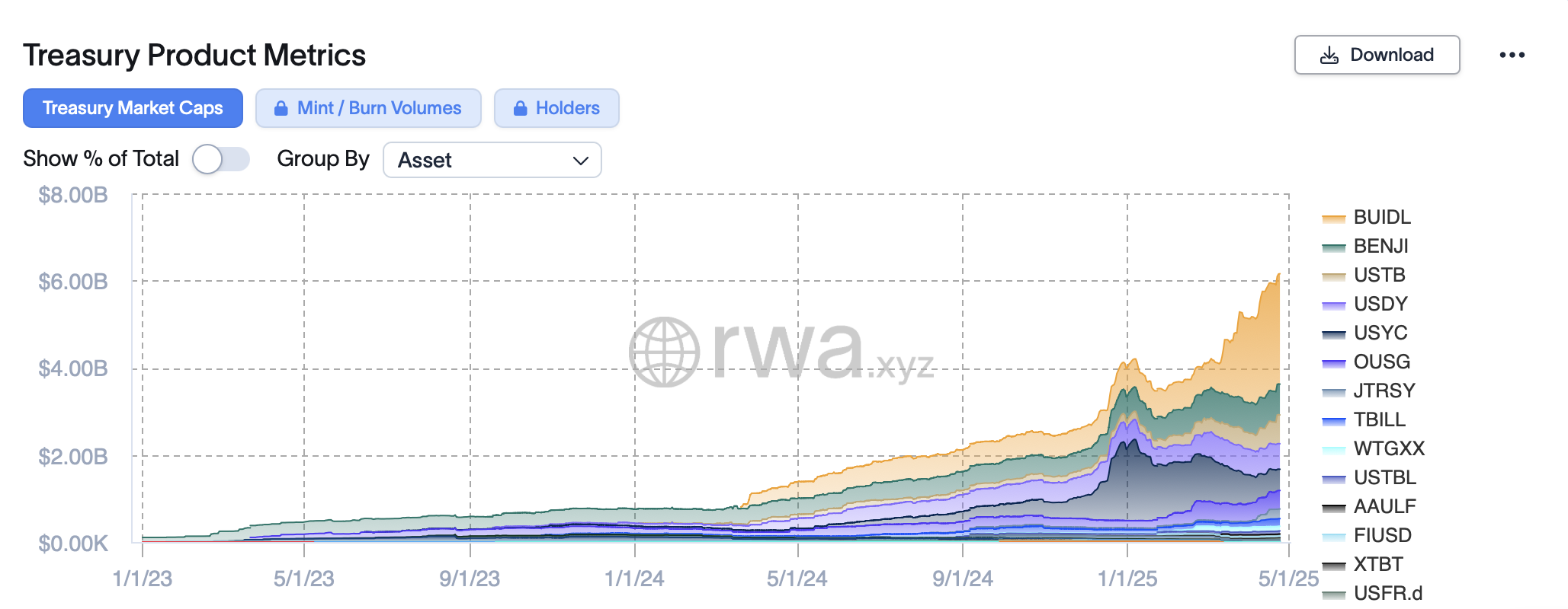 The largest issuer of tokenized treasures continues to be BlackRock. The company’s tokenized US treasury fund, called BUIDL, has a market capitalization of $2.5 billion, 360% higher than its nearest competitor. BlackRock disclosed a total of $11.6 trillion in assets under management in the first quarter of 2025.