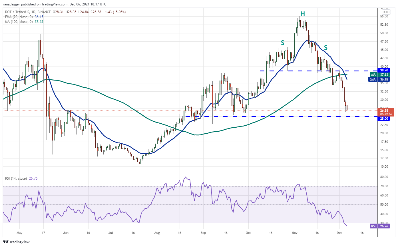 The worth turned down on Dec. 5 and the bears are once more trying to drag the DOT/USDT pair under the robust assist at $25. In the event that they succeed, the pair may drop to $22.50 and later to $20.