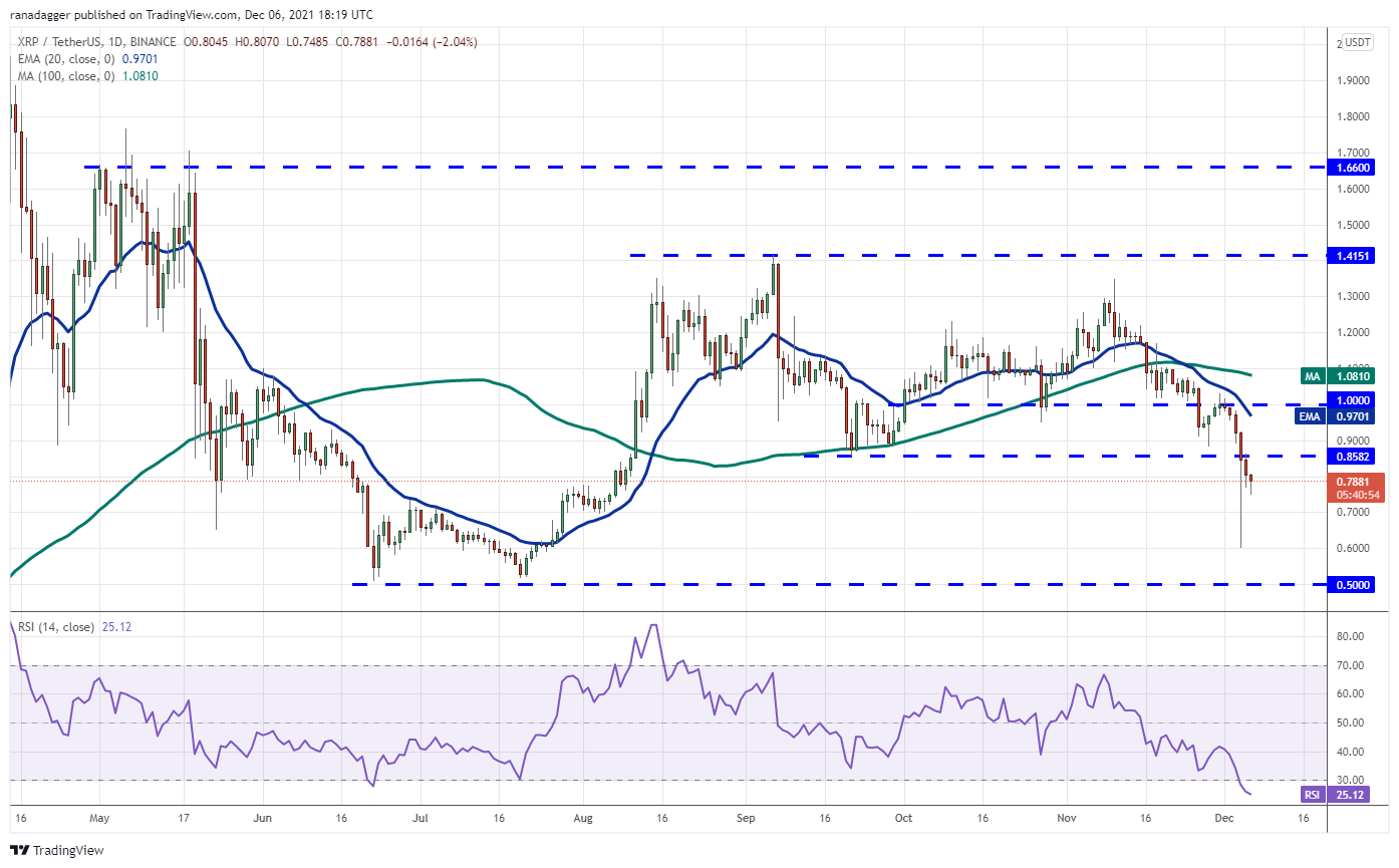 The patrons tried to push the worth above $0.85 on Dec. 5 however failed. This means that the extent has flipped into resistance. The bears will now once more attempt to resume the down transfer and sink the XRP/USDT pair to $0.60.