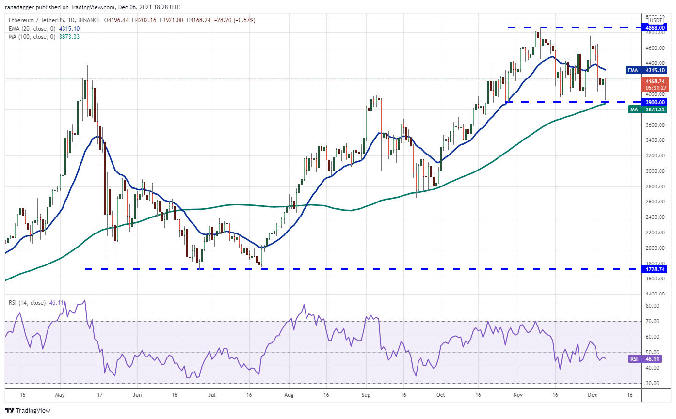 Ether (ETH) plummeted under the 100-day easy transferring common (SMA) ($3,873) on Dec. 4 however the bears couldn’t maintain the decrease ranges. This means that merchants are accumulating on dips.