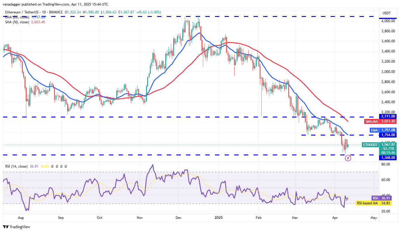 Ether (ETH) rebounded off the $1,368 support on April 9, but the bulls are struggling to sustain the higher levels.