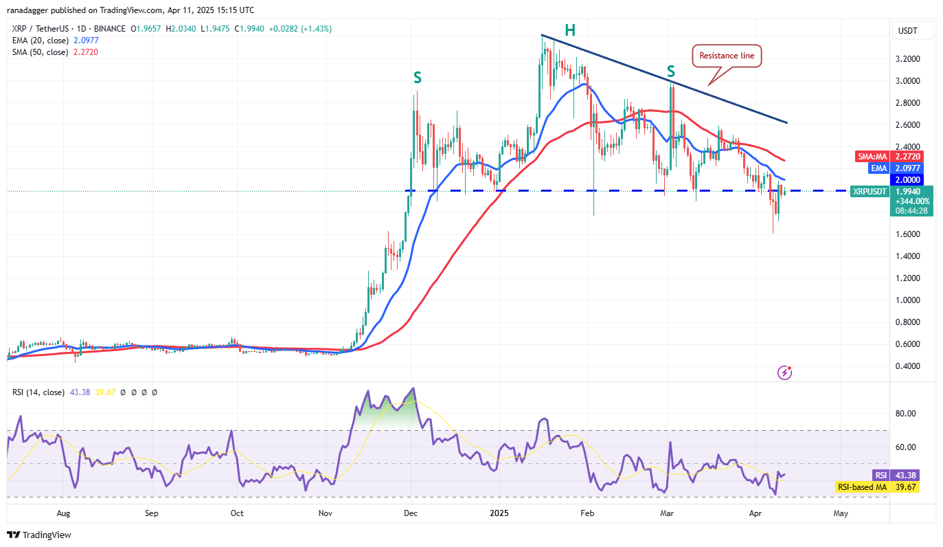 XRP (XRP) rose back above the breakdown level of $2 on April 9, but the recovery is facing selling at the 20-day EMA ($2.09).