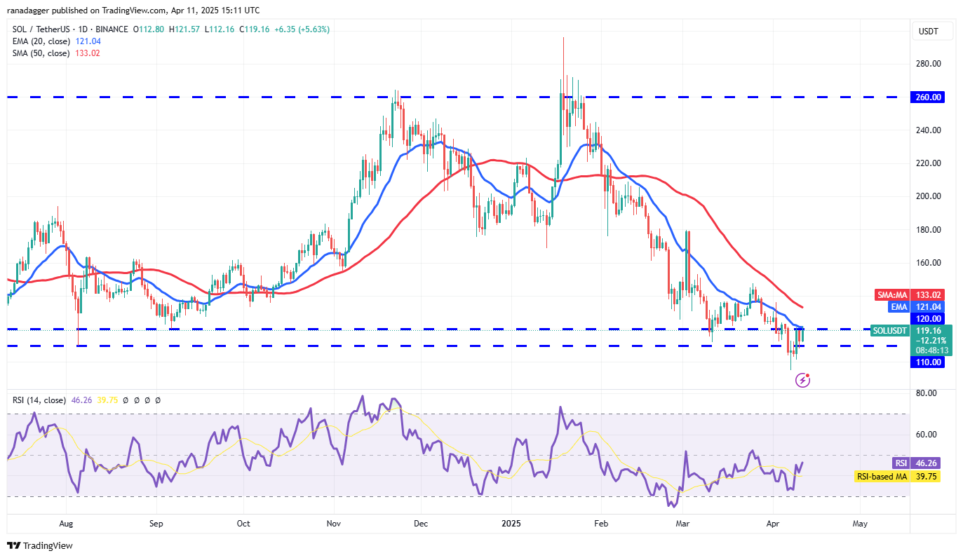 Solana (SOL) rose above the breakdown level of $110 on April 9, but the bulls are facing resistance at the 20-day EMA ($121).