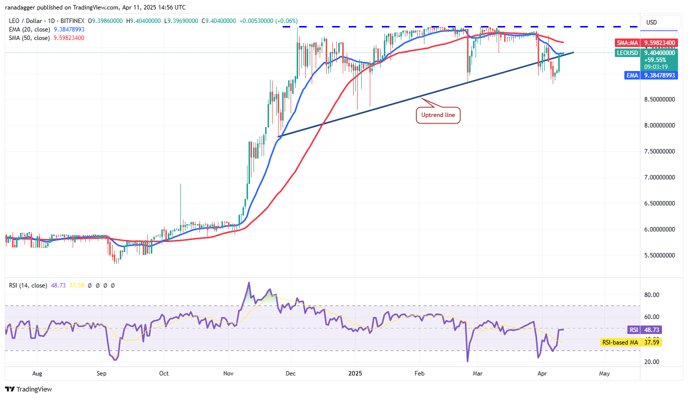UNUS SED LEO (LEO) rose back above the uptrend line on April 9, signaling solid demand at lower levels.