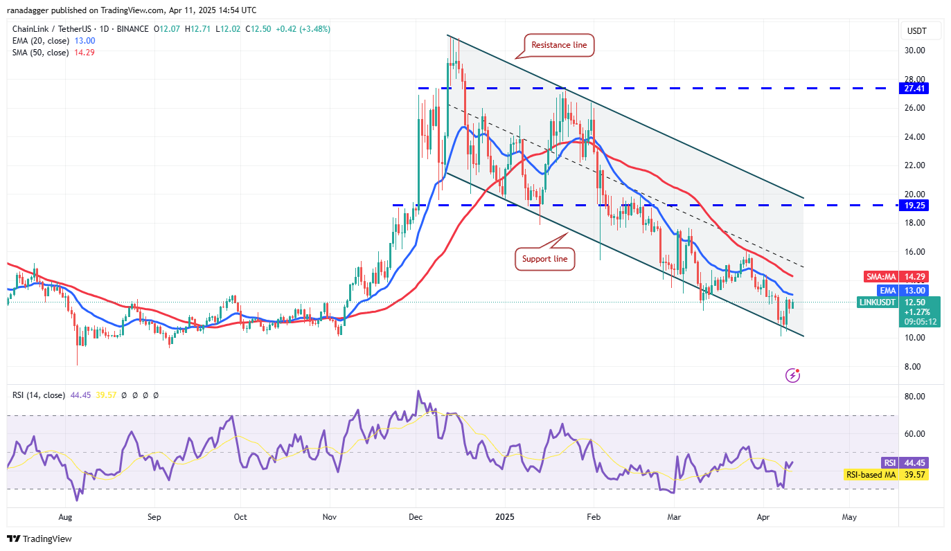 Chainlink (LINK) has been trading inside a descending channel pattern for several days. The rebound on April 9 shows that the bulls are trying to defend the support line.