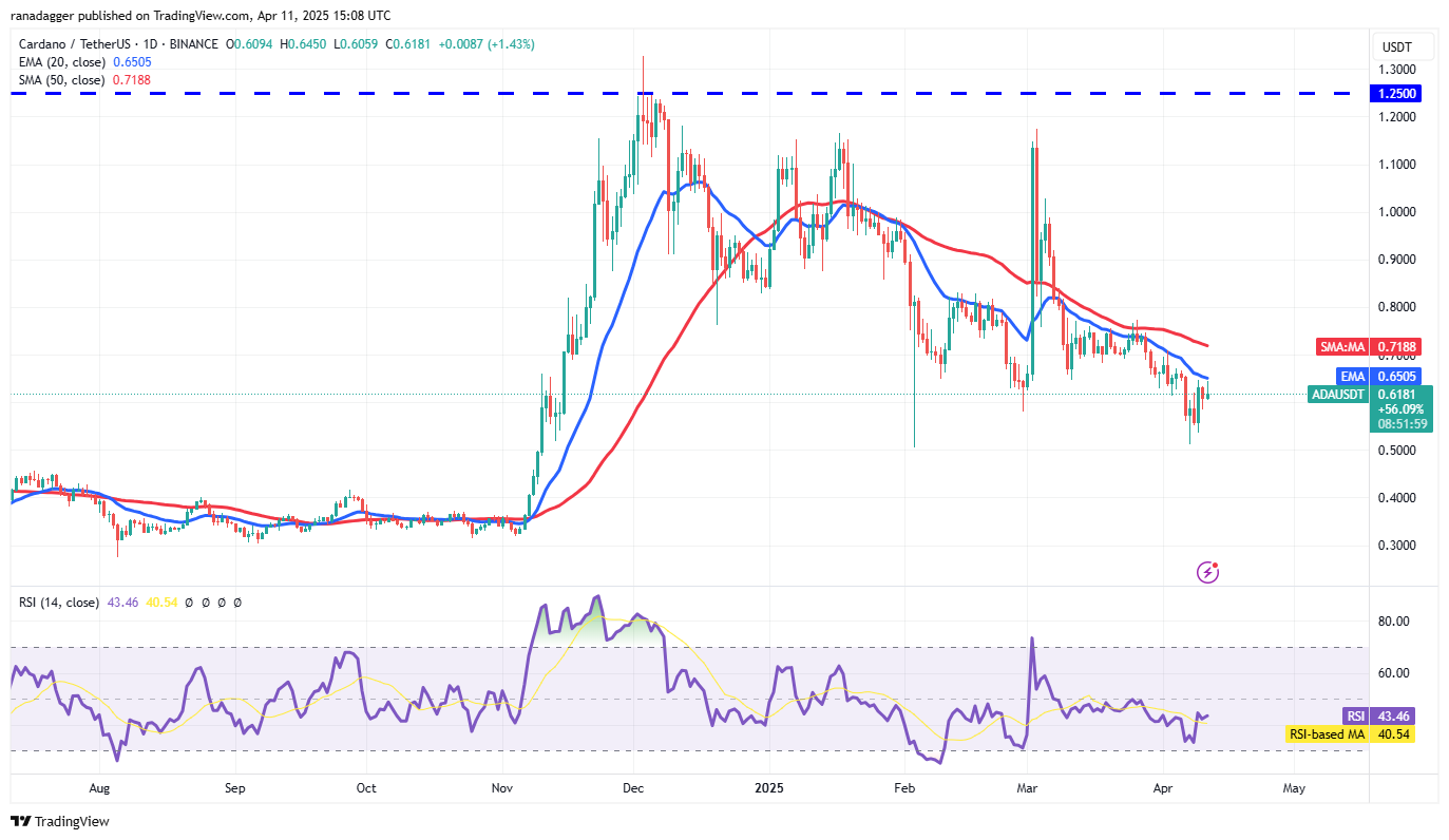 Cardano (ADA) has reached the 20-day EMA ($0.65), which is a strong near-term resistance to watch out for.