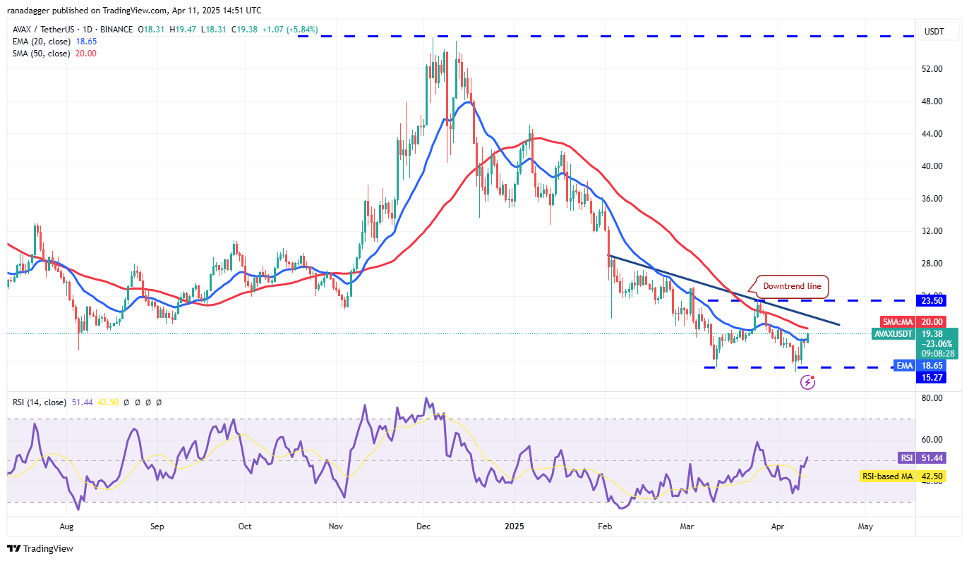There is resistance in the zone between the 50-day SMA ($20) and the downtrend line, but if the buyers overcome it, the AVAX/USDT pair could surge to $23.50.