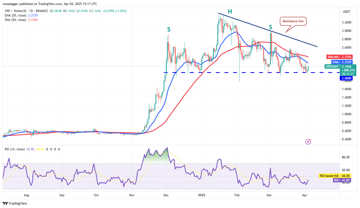 XRP (XRP) bears successfully defended the 20-day EMA ($2.23) on April 2 and pulled the price to the critical support at $2.