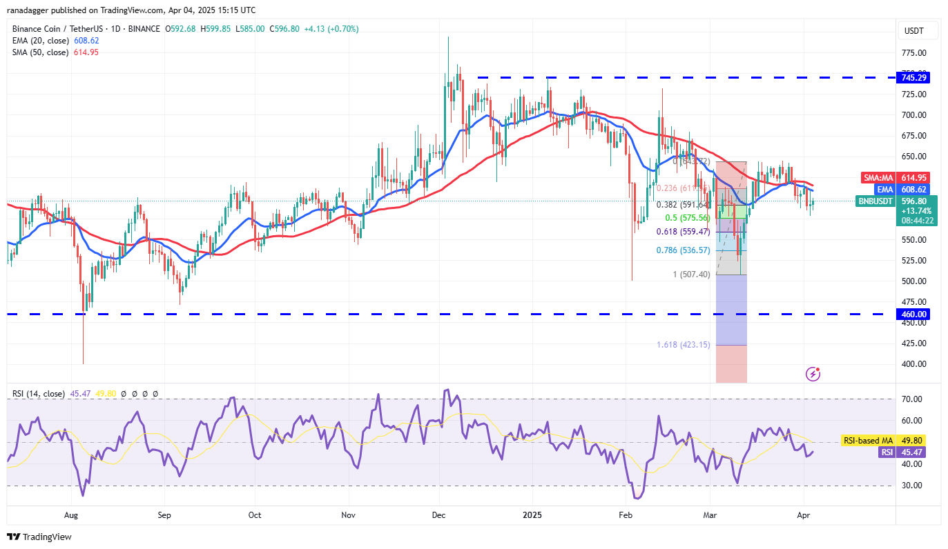 On the upside, the bulls will have to push and maintain the price above the 50-day SMA ($614) to signal a comeback. The BNB/USDT pair may rise to $644, which is a critical overhead resistance to watch out for. If buyers overcome the barrier at $644, the pair may travel to $686.