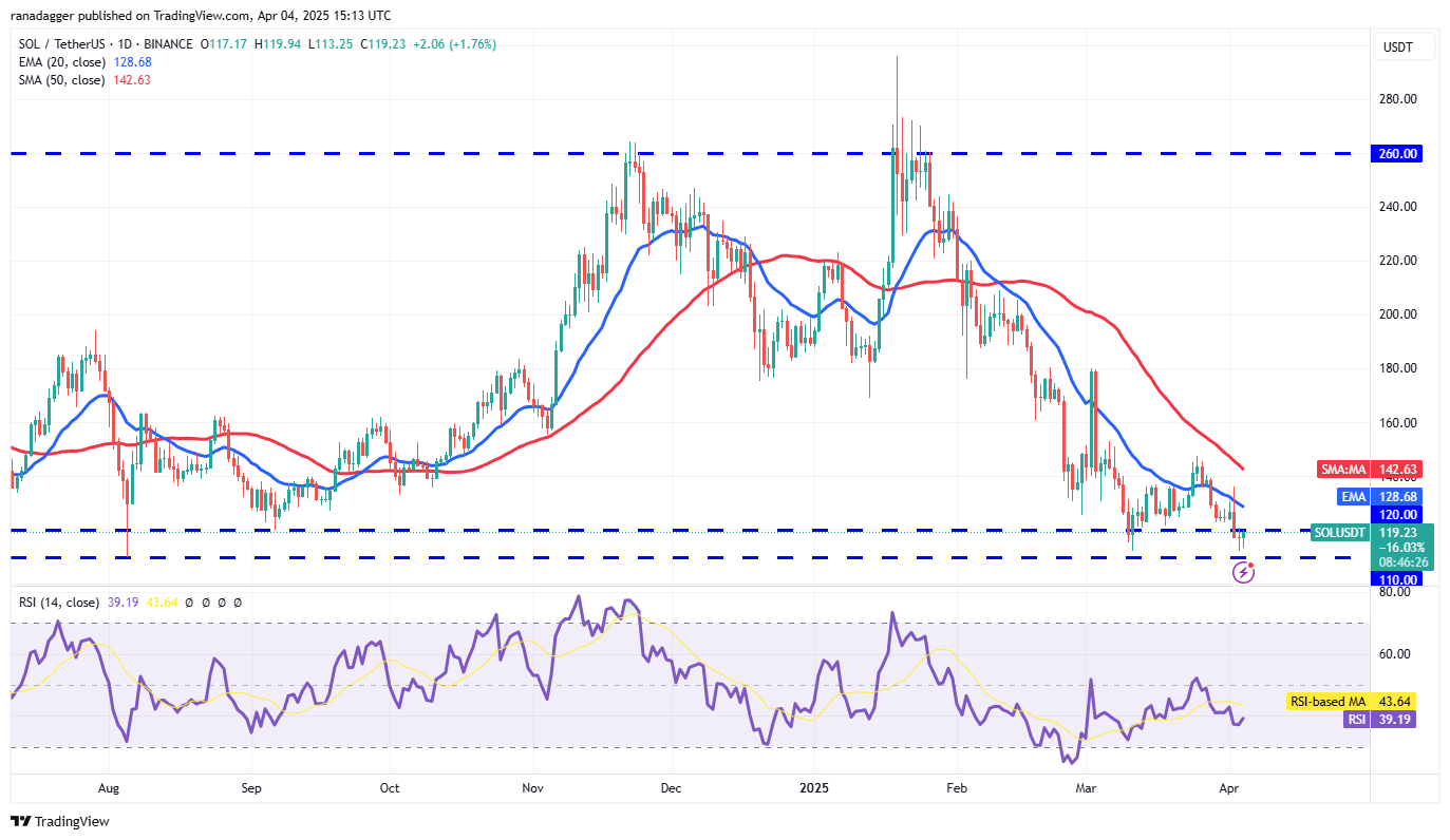 Solana (SOL) rose above the 20-day EMA ($128) on April 2, but the bears sold at higher levels and pulled the price below the $120 support.
