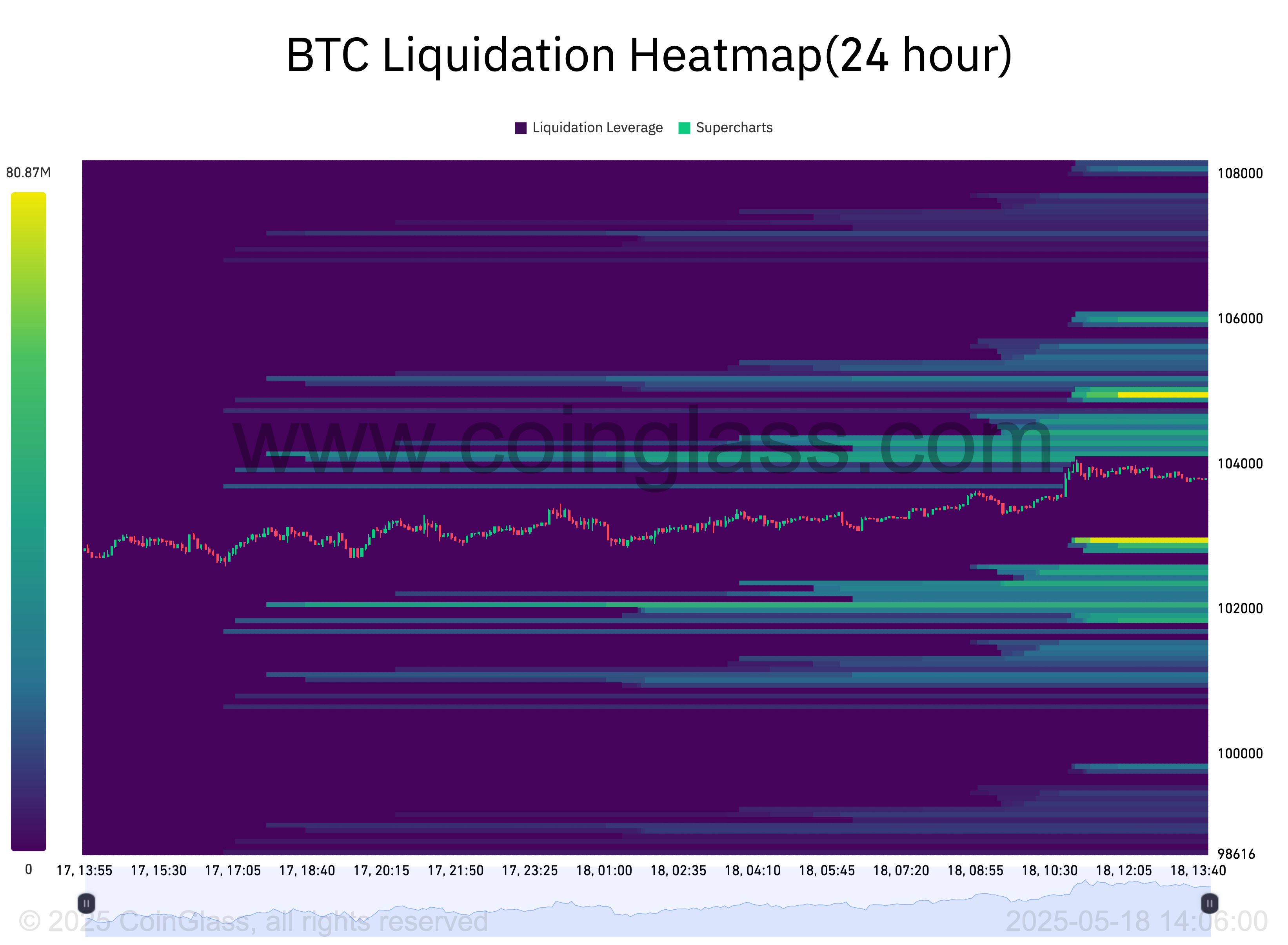 Now barely fluctuating up or down, BTC/USD was primed for a liquidity grab, with $105,000 and $103,000 both targets, data from monitoring resource CoinGlass confirmed.