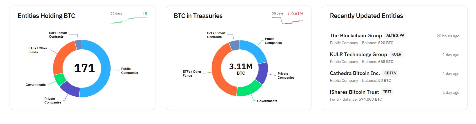 Public companies are among the largest Bitcoin holders. Source: BitcoinTreasuries.NET