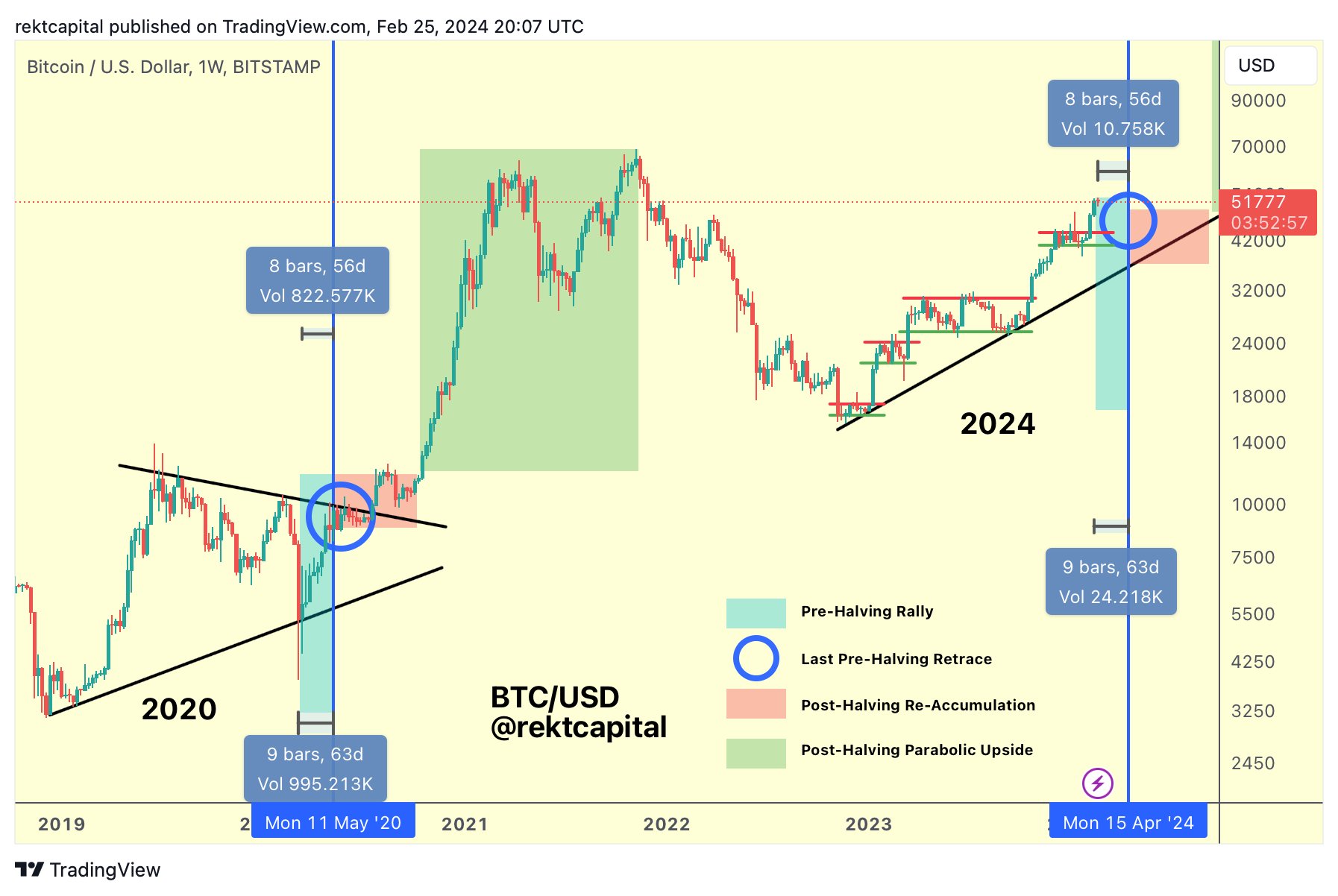 In one of his latest YouTube Shorts, Rekt Capital studied BTC price retracements seen around both the 2016 and 2020 halving events.