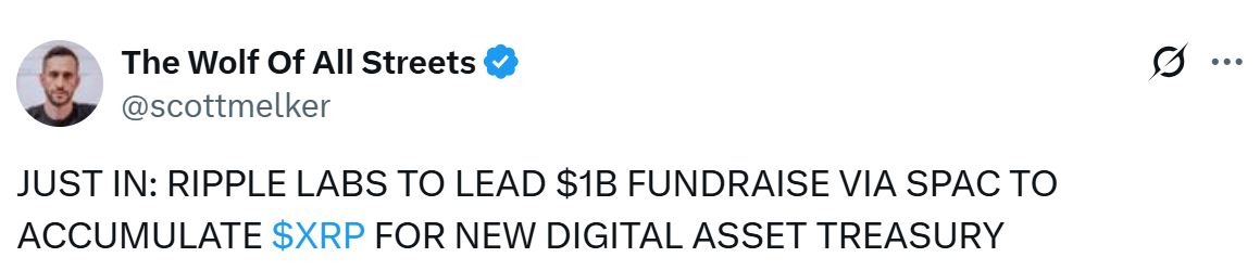 Ripple to acquire $1B in XRP through SPAC-led digital treasury move