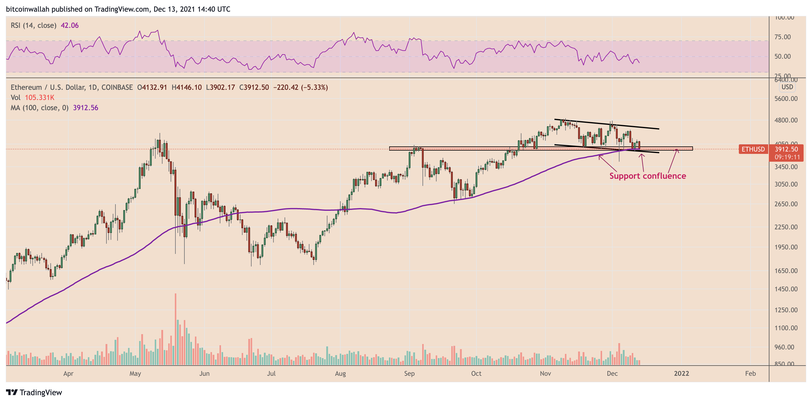Notably, Ether plunged Monday by over 5% to close $3,900 in a selloff impressed by related corrections throughout the cryptocurrency house. Nonetheless, ETH worth reached an space that has been currently attracting consumers.