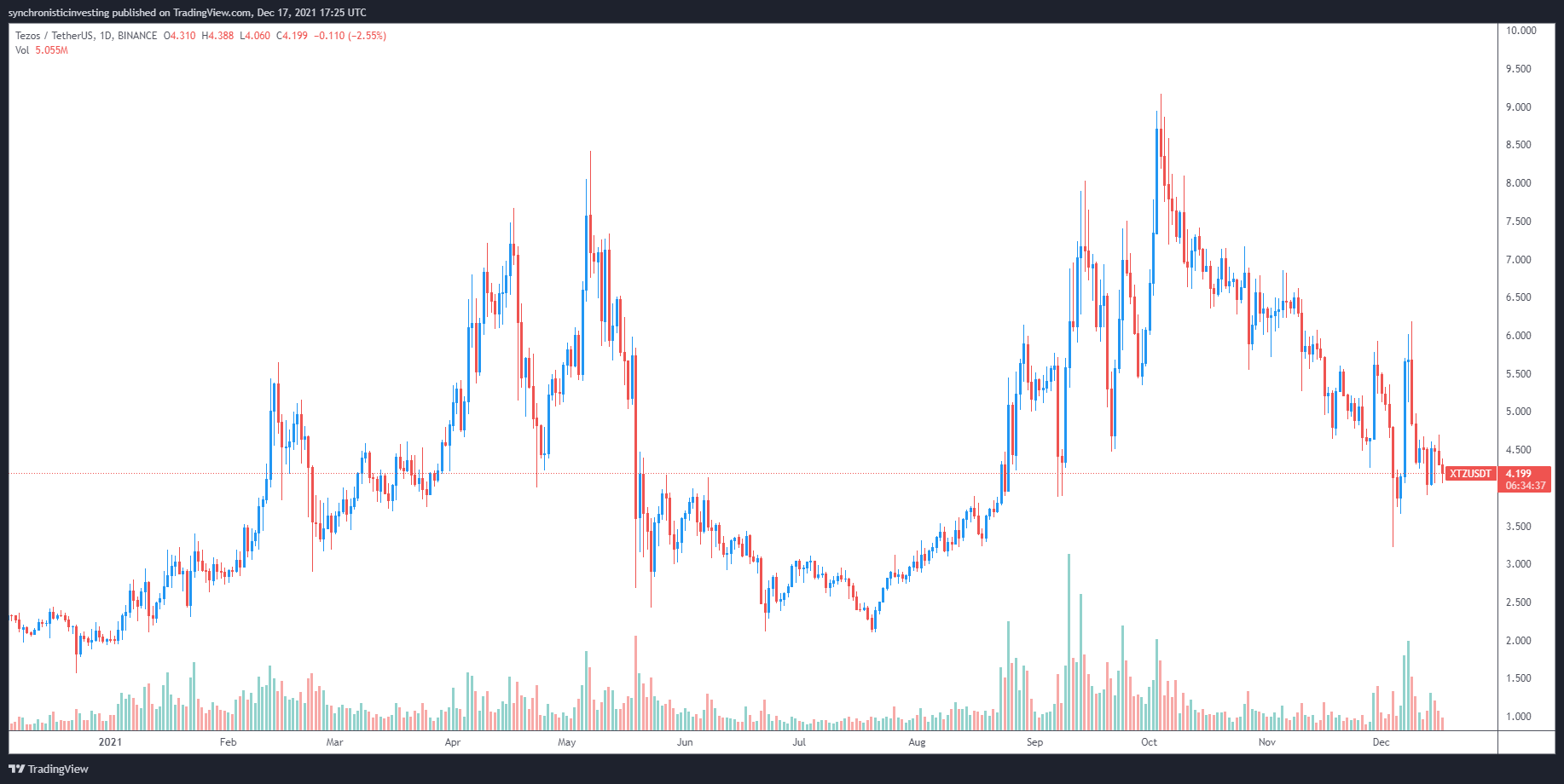 On the time of writing, XTZ is buying and selling at a value of $4.34 after hitting a yearly excessive of $9.17 on Oct. 3. This was simply previous to the broader market downturn that has put stress on costs throughout the crypto ecosystem because the market heads into the ultimate weeks of 2021.