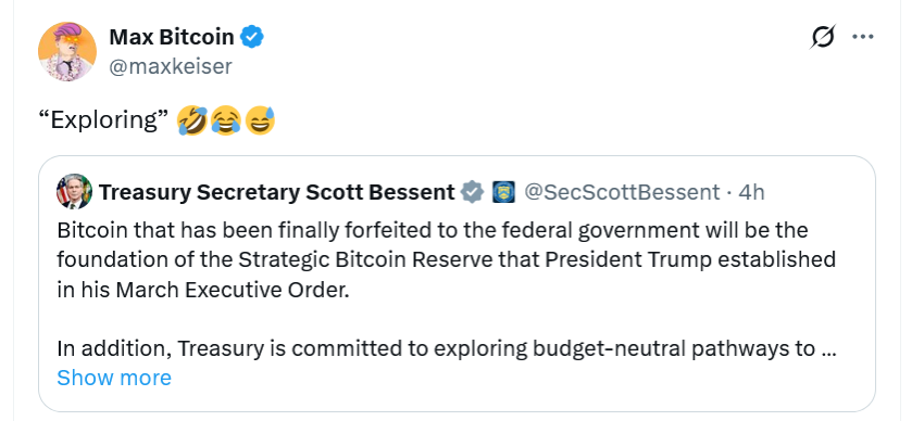 While Bessent’s clarification reassured some Bitcoiners, others are still concerned that the US Treasury Department may not execute on its promise: