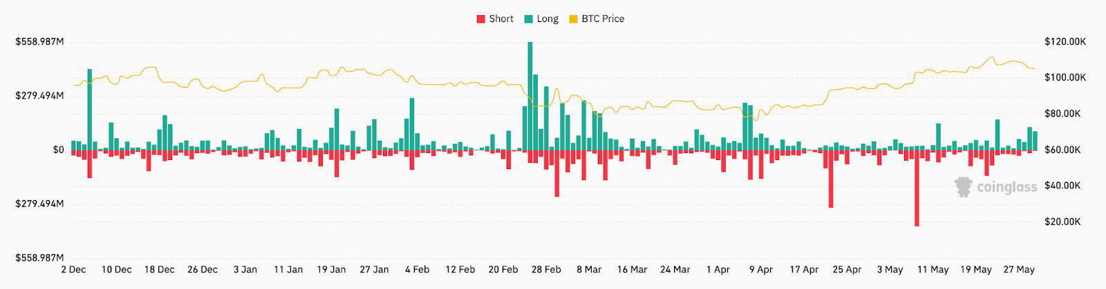 Bitcoin’s drop on May 30 triggered more than $210 million in long BTC liquidations.